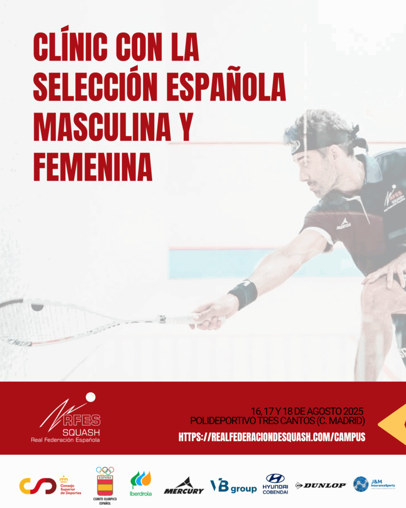 Las personas que contraten el clínic completo recibirán la camiseta de la Selección Española de Squash firmada por los jugadores.