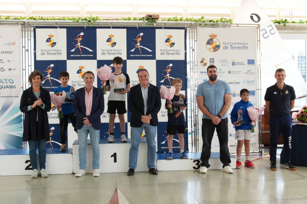 La ceremonia de clausura, celebrada en el emblemático Salón del Mar, contó con el respaldo institucional de Alicia Cebrián (Ayuntamiento de SC), José Luis Orizaola (Presidente de la RFES), David Labory (Federación Canaria de Squash) y los representantes de la Junta del RCNT, Ciro Machado (tesorero) y Francisco Mateo (presidente de la sección de frontenis).